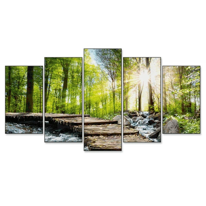 Het formaat van de afbeelding, maar ook de schoonheid van het landschap maakt indruk op de toeschouwer van het vijfdelige veelluik “Aan de bergbeek”. Wat wij zien is een landschap in de kleuren van een zomerdag, dat de ziel raakt. Het zonlicht valt door de bomen en schijnt op het houten bruggetje, dat alle vijf schilderijen harmonisch met elkaar verbindt. Zelfs het ruisen van de bergbeek wordt hoorbaar als de hobbyschilder zich aan het werk zet en een schilderij tovert dat telkens opnieuw een rustgevende en ontspannen sfeer in de huiskamer schept.