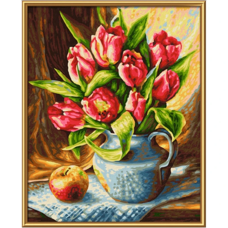 Stevig schilderkarton met linnenstructuur 24 x 30 cm. Exacte contourtekeningen met goed leesbare getallen. Acrylverf op waterbasis in verschillende kleuren. Verf mengen niet nodig. Fijne schilderspenseel. Controleblad en uitvoerige instructies voor succesvol schilderen.