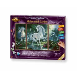 De eenhoorn is een mystiek en fantasmagorisch wezen in de vorm van een wit paard met een hoorn op zijn voorhoofd. Het staat voor vriendelijkheid, kracht, oprechtheid, onschendbaarheid en zelfrealisatie. Zelfs in moeilijke levenssituaties zou het vanwege zijn “magische krachten” steun en hulp kunnen bieden. Deze spirituele betekenis is ook een mogelijke verklaring voor de cultstatus die de eenhoorn door de eeuwen heen heeft genoten. Het motief geeft de magische fascinatie weer door de kleuren en het ontwerp van de eenhoorn. Een betoverende artistieke interpretatie voor hobbyschilderen.