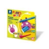 Inhoud: 4 x 42 g blokjes Fimo kids, instructies, papieren sjablonen, speelvlak, stickers & boetseerspatel