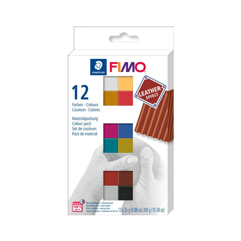 Set met 12 halve blokken (25 gram) Fimo leather effect