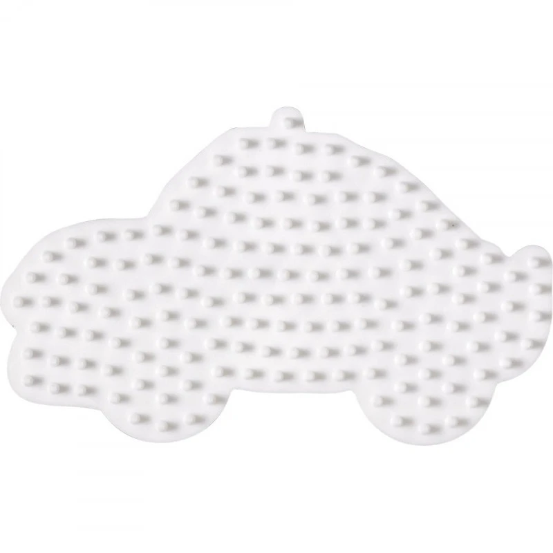 Strijkkralen kun je in bijna elk gewenst patroon leggen en dan door middel van strijkpapier en een strijkijzer samensmelten. Maar daarvoor heb je natuurlijk wel een grondplaat nodig. Witte grondplaat in de vorm van een auto.