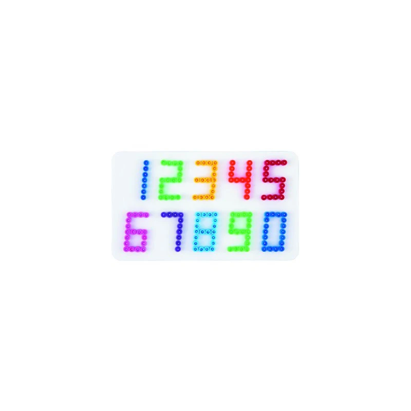 Strijkkralen kun je in bijna elk gewenst patroon leggen en dan door middel van strijkpapier en een strijkijzer samensmelten. Maar daarvoor heb je natuurlijk wel een grondplaat nodig. Deze witte grondplaat bevat de nummers 0 t/m 9.