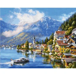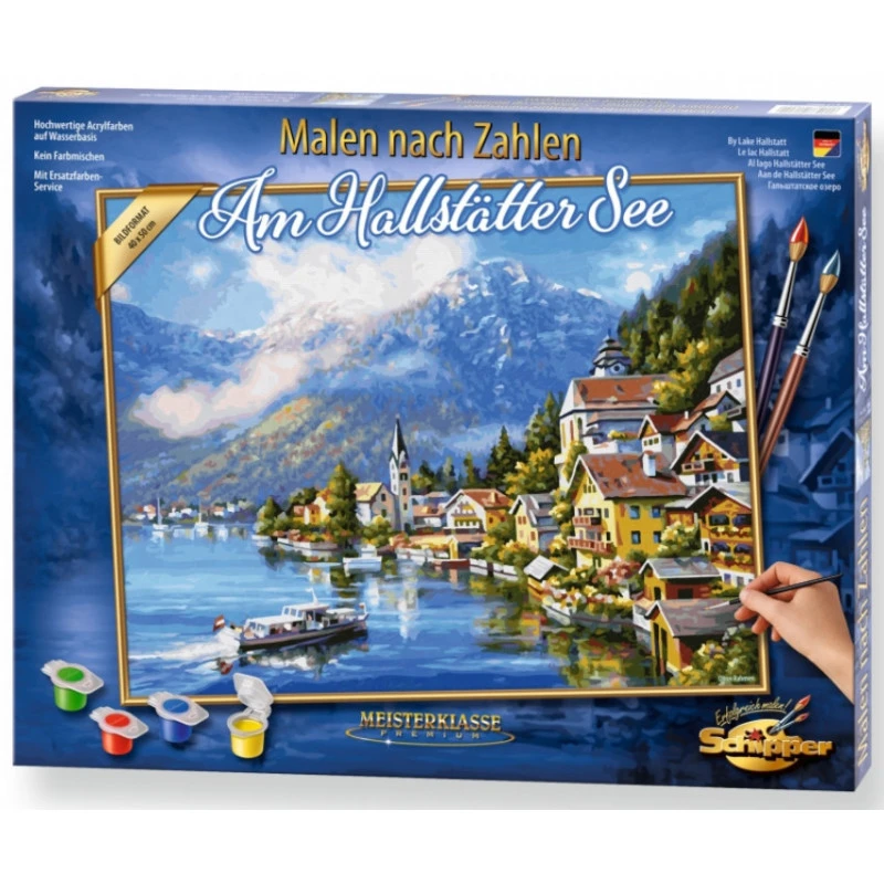 Stevig schilderkarton met linnenstructuur 40 x 50 cm. Exacte contourtekeningen met goed leesbare getallen. Acrylverf op waterbasis in verschillende kleuren. Verf mengen niet nodig. Fijne schilderspenseel. Controleblad en uitvoerige instructies voor succesvol schilderen.