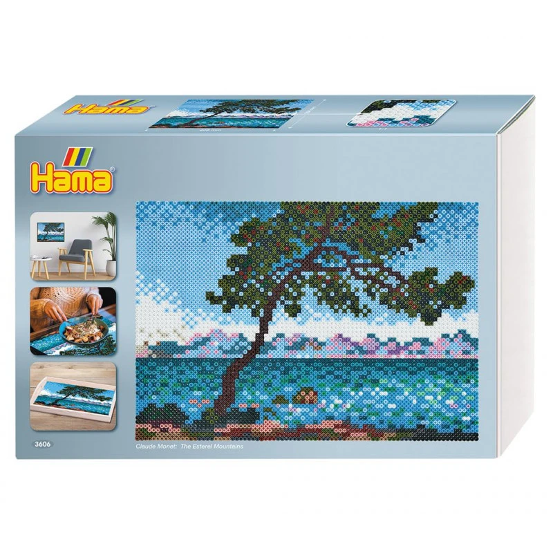 Maak de mooiste kunstwerken met de bekende Hama strijkkralen! Met deze complete set maak je een mooi zeezicht schilderij van Claude Monet. Inhoud: ongeveer 10.000 strijkkralen, 6 grote vierkante grondplaten, instructies en strijkpapier. Wordt geleverd in full-colour doos. Geschikt voor kinderen