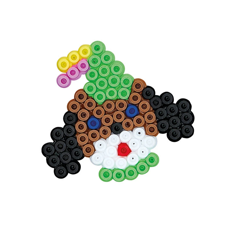 Ca. 2.000 kralen, 3 kleine onderbordjes: Vierkant nr. 220, rond nr. 222 en ster nr. 270. In kleur bedrukt ontwerpblad, instructies en strijkpapier.