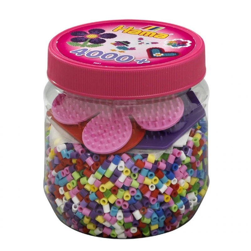 Hama Strijkkralenset in pot, 4000st. + grondplaten (Roze)