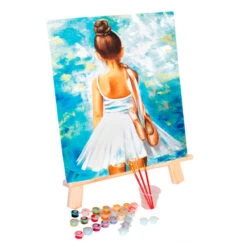 Stevig schilderkarton met linnenstructuur 24 x 30 cm. Exacte contourtekeningen met goed leesbare getallen. Acrylverf op waterbasis in verschillende kleuren. Verf mengen niet nodig. Fijne schilderspenseel. Controleblad en uitvoerige instructies voor succesvol schilderen.