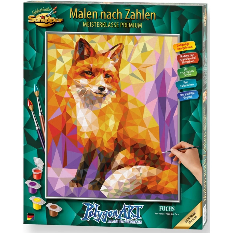 De schilderverf (acrylverf) is in water oplosbaar, sneldrogend en lichtecht. Voor elk motief wordt hij individueel samengesteld en schilderklaar gemengd. De hoeveelheid en het aantal kleuren is voldoende voor het gekozen motief.