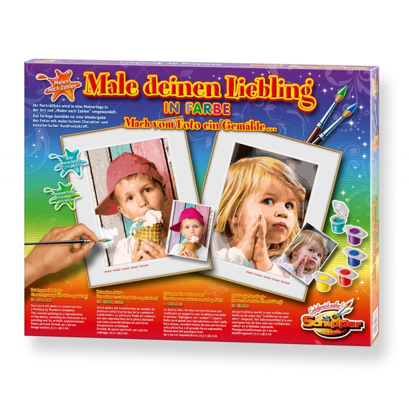 Met behulp van de door Schipper Schilderen op Nummer ontwikkeld beeldverwerkingsprogramma is het mogelijk om een portretfoto te veranderen in een schildermotief volgens de “Schilderen op nummer” techniek. Iedere hobbyschilder kan op deze wijze zelf een portret van zijn lievelingsdier, dochter, opa, oma of echtgenoot schilderen. Met deze nieuwe variant is het nu mogelijk om de afbeelding in kleur te schilderen!