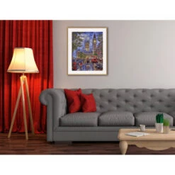 De Houses of Parliament met de beroemde Big Ben staan als geen ander gebouw voor de kosmopolitische stad Londen. De avondsfeer met rode dubbeldekkerbussen en typisch Engelse taxi’s op een glinsterende, regenachtige straat geven het beeld uitstraling en diepte. De subtiel verlichte oriëntatiepunten van de metropool – maar ook de maan die aan de bewolkte hemel verschijnt – onderstrepen de bijzondere magie die uitgaat van deze buitengewone stad. Dit motief blijkt dus een schitterend kunstwerk te zijn voor de hobbyschilderkunst en tegelijkertijd een hommage aan Londen.